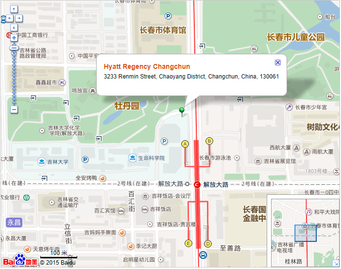 Hyatt Regency Changchun Address: 3233 Renmin Street, Chaoyang District, Changchun, China, 130061.
